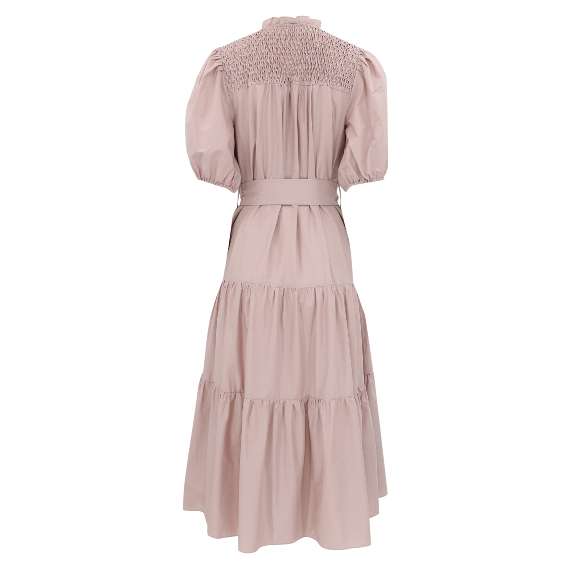 The Eleanor Dress is a simple but staple midi dress. Featuring voluminous puff sleeve, buttons on the center front, and a round neck detail. Completed and ships with a self-tie belt.