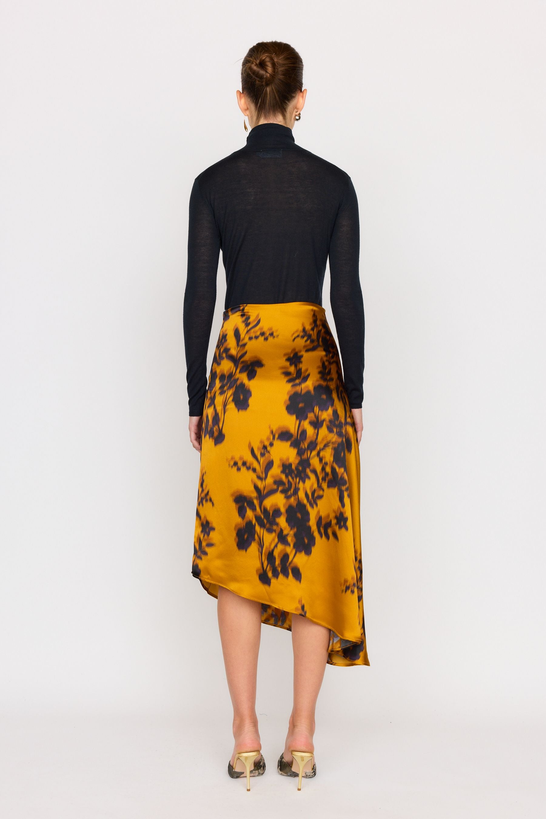 The Josie Skirt indulges in timeless sophistication with this luxurious Satin fabrication designed to elevate any ensemble. This skirt is crafted in a bold print that transitions seamlessly into Autumn and features an asymmetrical hem which adds a modern touch. It is complete with an invisible zipper and a hook and eye at the side for closure.
